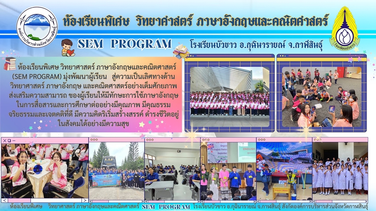 ♦ ห้อง SEM Program จำนวน 1 ห้องเรียน รับนักเรียนทั้งชาย และ หญิง จำนวน 36 คน
